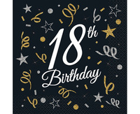 Serwetki urodzinowe 18th Birthday czarne, 33 cm 20 sztuk