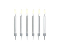Świeczki urodzinowe na tort gładkie srebrny 6cm 6 sztuk