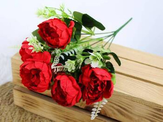 Bukiet sztuczny kwiat Piwonia, biała, 10 łodyg, 49cm