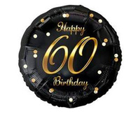 Balon foliowy Happy 60 Birthday, czarny złoty nadruk, 46 cm