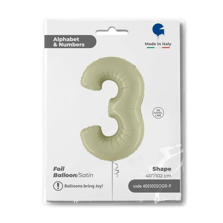 Balon Foliowy Cyfra 3, Satynowa Oliwkowa, 102cm Grabo