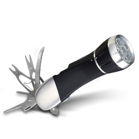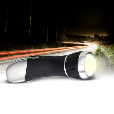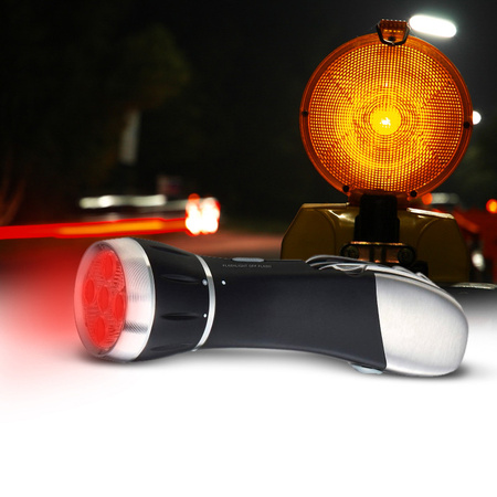 - Latarka dająca intensywne, jasne światło oraz czerwoną lampkę, gotową do użycia jako sygnał alarmowy;