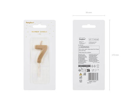 Świeczka urodzinowa Cyferka 7, złota, 5,5cm